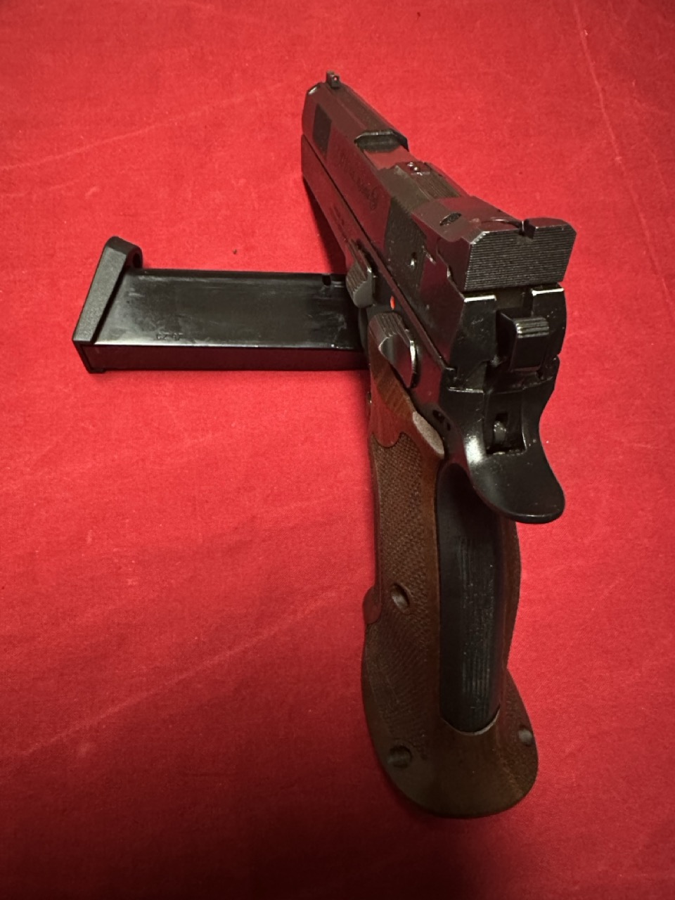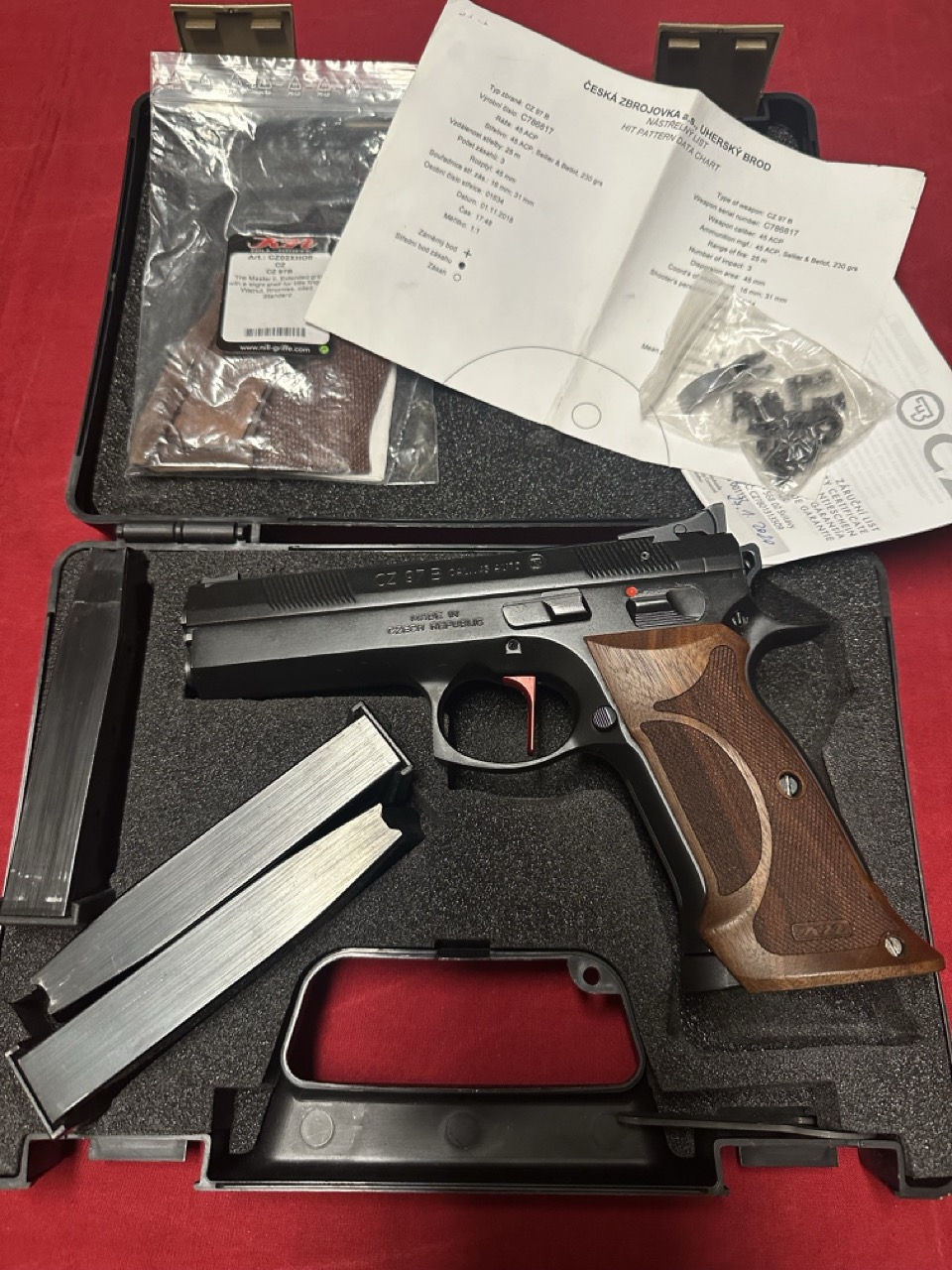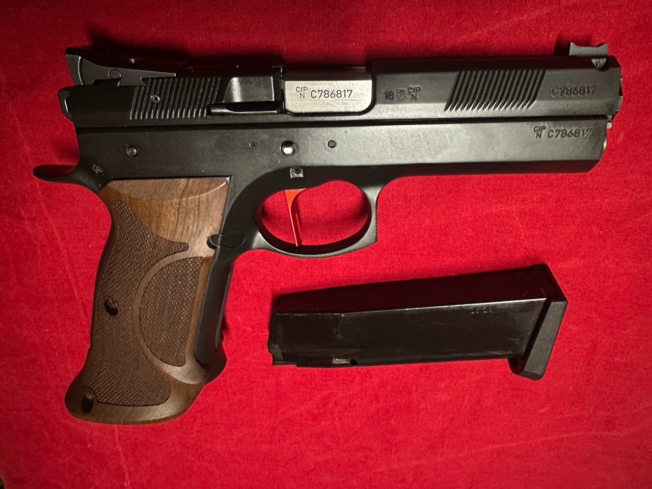 Pistole je jednočinná v málo vídané sportovní úpravě pana Zendla (původní díly k dispozici) má 4 zásobníky. Pažbičky Karl Nill (původní k dispozici). Kompletní balení záruční i nástřelný list zbraň je skoro nestřílená ( stále jsem u KMR, který udělal i 45.ACP) Vzhledem k ukončení výroby v roce 2022 jde již o raritní zbraň v tomto stavu!