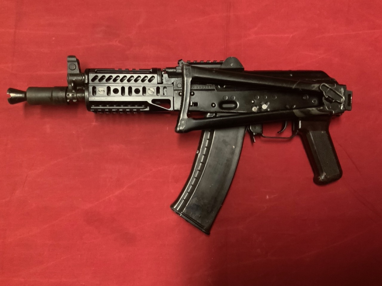 Ikonická AKS-74U Krinkov (Usáma) ráže 5,45x39, (Avtomat Kalashnikova Skladnoy 74 Ukorochenny - "Kalašnikovova zkrácená automatická puška 74 se sklopnou pažbou") je zkrácená verze útočné pušky AKS-74, vyvinutá počátkem 80. let pro osádky bojových vozidel a výsadkové jednotky, pro své kompaktní rozměry se stala velmi oblíbenou také u pořádkových a speciálních jednotek.